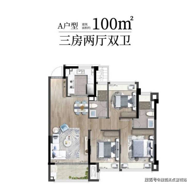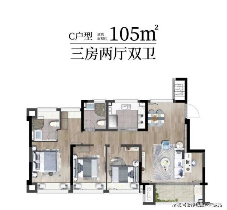 ·约73㎡|2房2厅1卫(得房率约76%)·约88㎡|3房2厅1卫(得房率约79%)·约100㎡|3房2厅2卫(得房率约79%)·约105㎡|3房2厅2卫(得房率约81%)