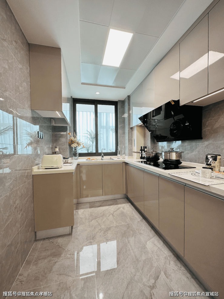 U型厨房设计操作动线合理,空间充足,烹调自如。