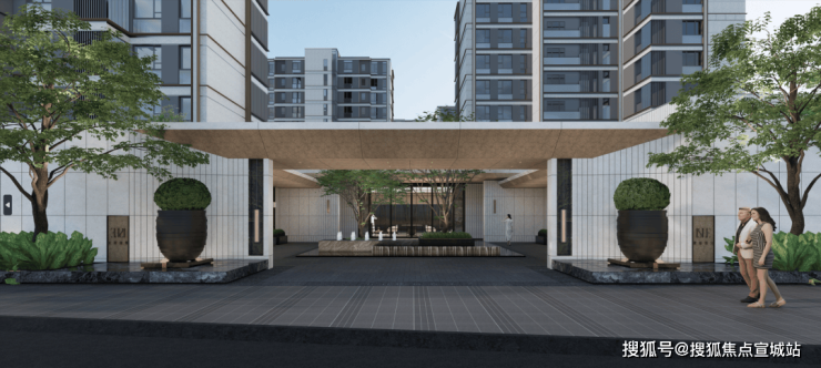 从繁华都市转场进入静谧领域,高大乔木掩映,营造自然包裹的静谧氛围,酒店式落客空间尽释雅奢精致,带来归家的品质与仪式感。
