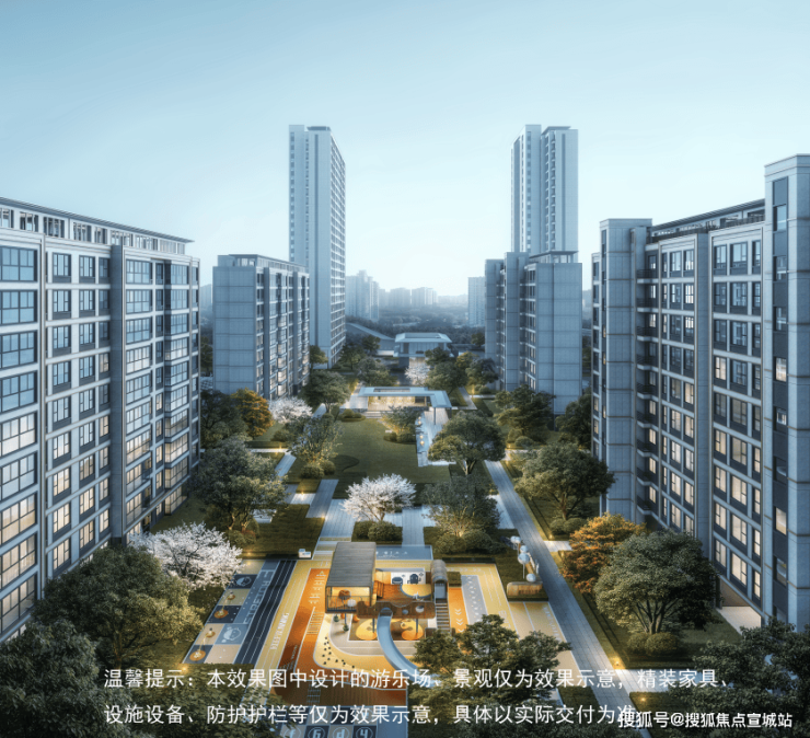 项目以围合式建筑布局、借景式景观设计,整体规划出一环三轴多园景观。社区内自带600米的健康跑道、约500㎡的狮林王国主题儿童娱乐区等全龄设施。