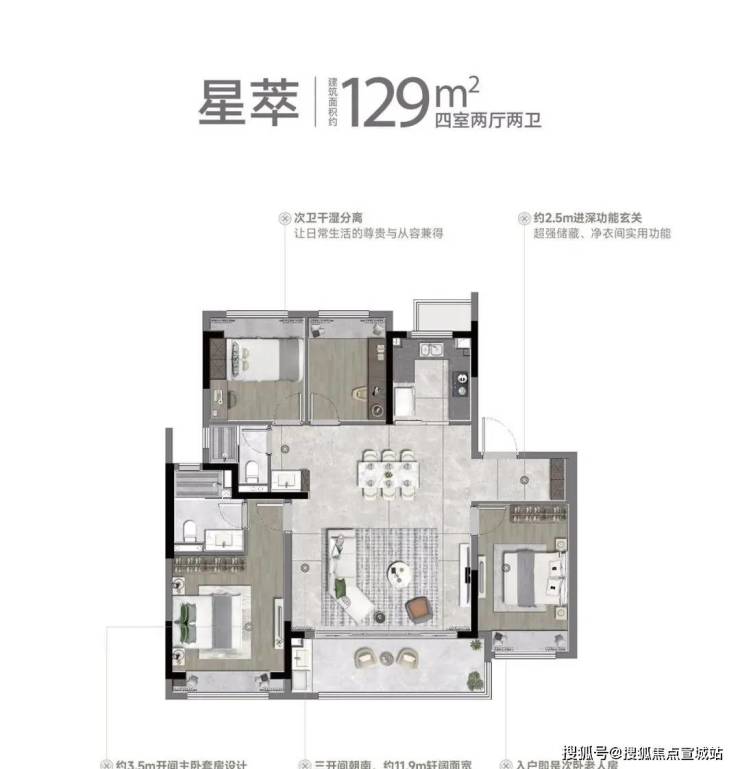 交付标准:精装修交付(含地暖,中央空调,新风系统三大件)