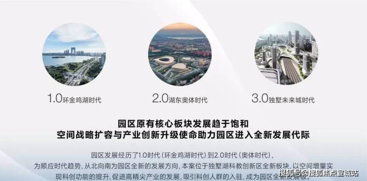 全新园区发展极,3.0独墅未来城:园区从1.0环金鸡湖时代到2.0湖东奥体时代,再到目前3.0独墅未来城时代,谋划全新发展极。