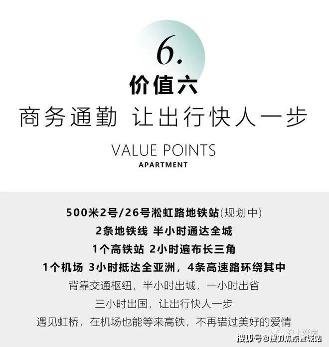 交通配套方面:项目500米2号/26号淞虹路地铁站,2条地铁线半小时通达全城,1个高铁站2小时遍布长三角,1个机场3小时抵达全亚洲,4条高速路环绕其中,背靠交通枢纽,半小时出城,一小时出省。