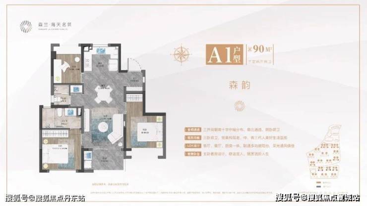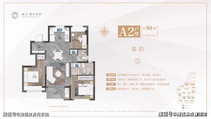1、建面约90㎡做到了三房两卫,构筑老、中、青三代人美好生活蓝图。格局上实现了真正的全明空间与南北通透,客厅、餐厅、厨房一体,联通多功能阳台,采光通风俱佳。