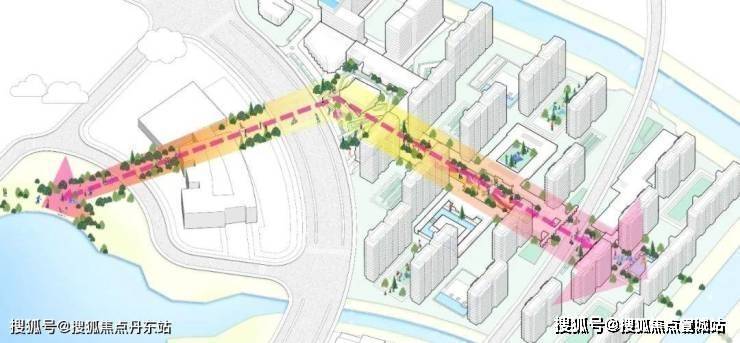 据悉社区由自持住宅、可售住宅、社区配套三大功能组合而成,北区为公区自持配套区,中区为住宅社区,南区为住宅社区及配套。