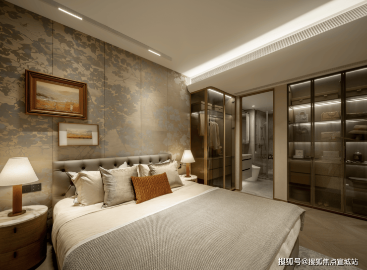 其二,主卧拥有270°转角飘窗和观景视野,这一般是豪宅项目中250㎡以上户型才有的配置。不仅是豪宅项目的配置下沉,更是整个南翔至今更具逼格的主卧。