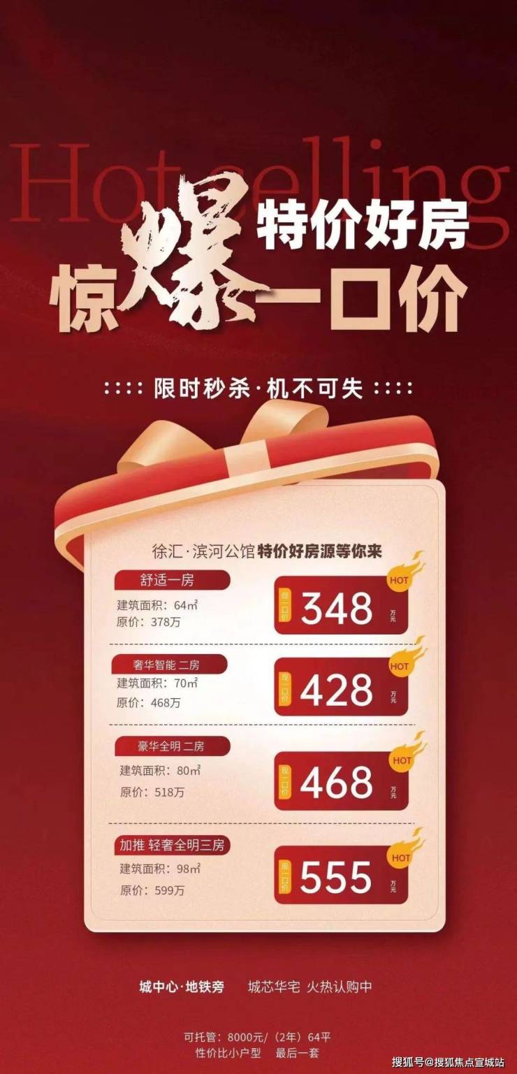 最新消息,直降112万!徐汇中心! 环线广场通燃气精装公寓,不限购,现房,直接认购,建面64平!原总价460万!现在特价318万!错过无!