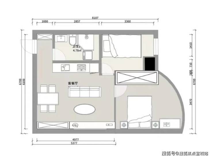 6楼G、H室房型如下