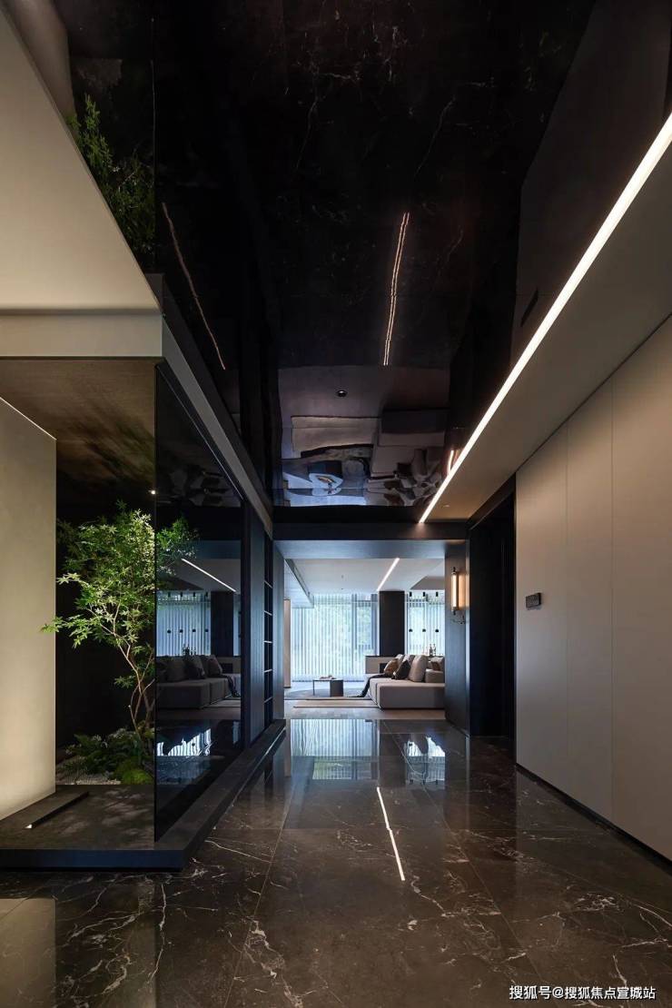 设计师采用【爱力蒙特∙黑金帝国石】地面通铺,独特的浓郁黑色底色,自带无尽视野纹理舞动地闯入,多元文化沉淀的石材,在灯光的映衬下,赋予空间奢雅而高级的气息。推动人与场域建立共鸣与自洽的美好连接。