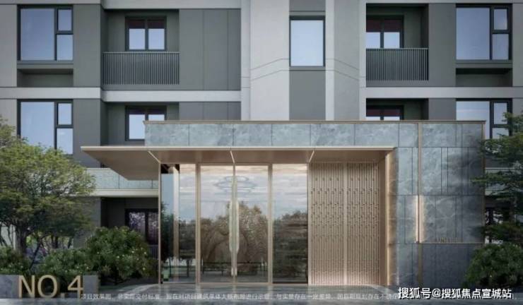 项目的建筑外立面采用现代简约的风格,搭配有序的横线线条,以米白色为主并搭配一定香槟金暖色调,并利用大面积玻璃+部分房间近乎落地窗设计,通过分段式化解建筑尺度,丰富造型,整体时尚且更为耐看。