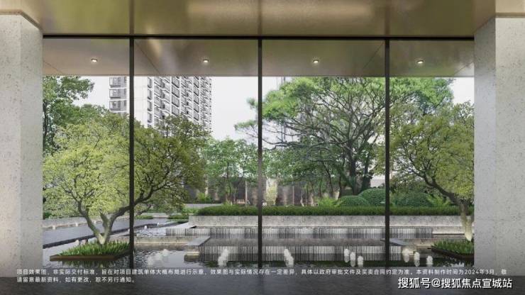 以精工迎宾大门设计,通过门头、水岸、花园等的组合,打造十字主轴的归家仪仗,形成极具品味的入户体验;并融入至臻工艺,从主入口、地库、公区打造专属的仪式感。