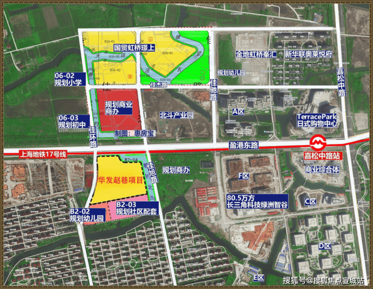 项目位于青浦赵巷镇商业商务板块,向东600米左右,就是运营中的17号线嘉松中路站和预计今年开业的长三角绿色智谷Terrace Park购物中心。