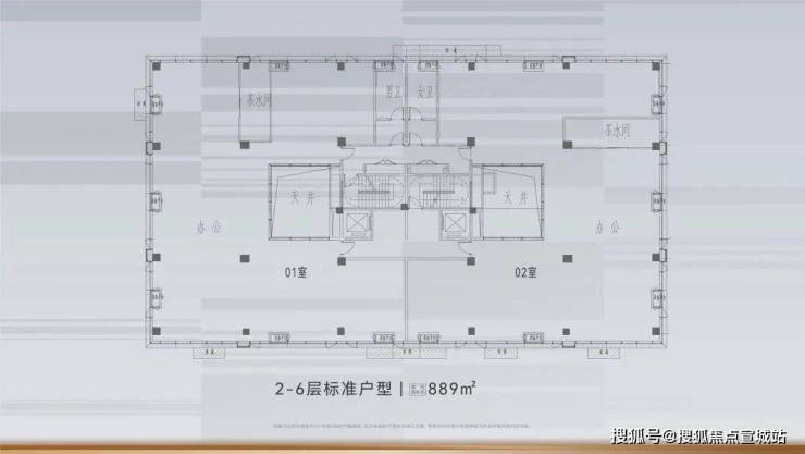 【户型组成】1F(商业)建筑面积约302-328m,2-6F(办公)建筑面积约445m²2,7F(办公)建筑面积约590m