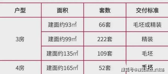其中,93-99m²为装修交付,135-139-165m²为毛坯交付