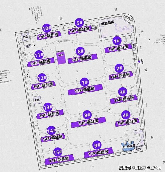 项目规划设计方案,拟建15栋11-14F高层住宅、1栋17F保障房以及部分社区配套用房,可售商品房约800套+。