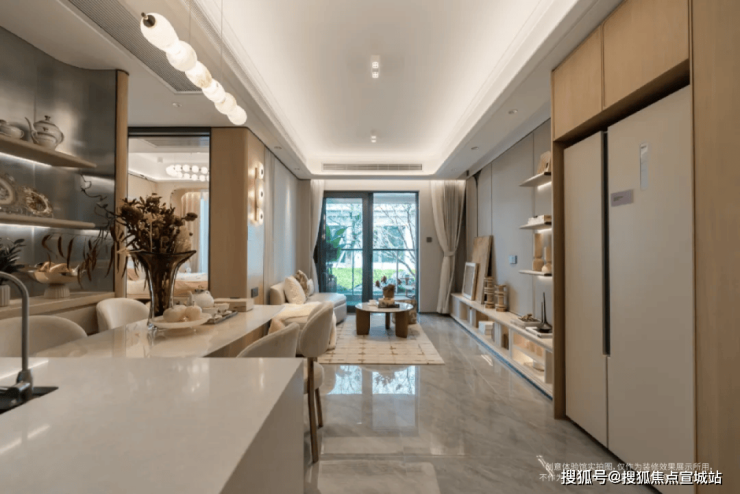 建面约99㎡的边套户型采用大横厅的设计,3+1开间朝南的设计,让这个户型的南向采光面以及尺度感变得十分惊人。