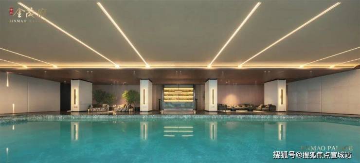 通过奢石、铝板、水景、灯带等巧妙组合,营造了层次丰富的立面线条,彰显出“金茂府系”低调隐奢的豪宅风。