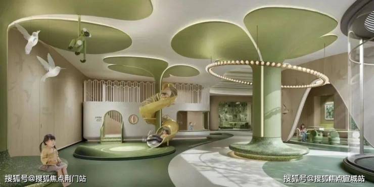 南北地块下沉式双会所配置童玩主题,学习空间,健身房、恒温泳池、室内篮球场和下沉式庭院组成,未来交由业主免费使用。