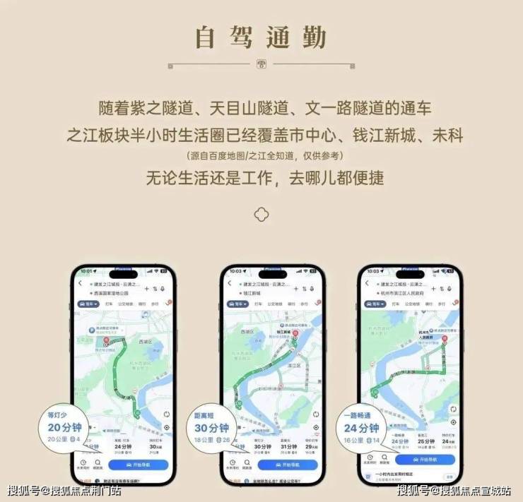 目前,随着紫之隧道、天目山隧道、文一路隧道的通车,云涌之江半小时生活圈已经覆盖市中心、钱江新城、未来科技城等,无论生活还是工作,去哪儿都便捷。