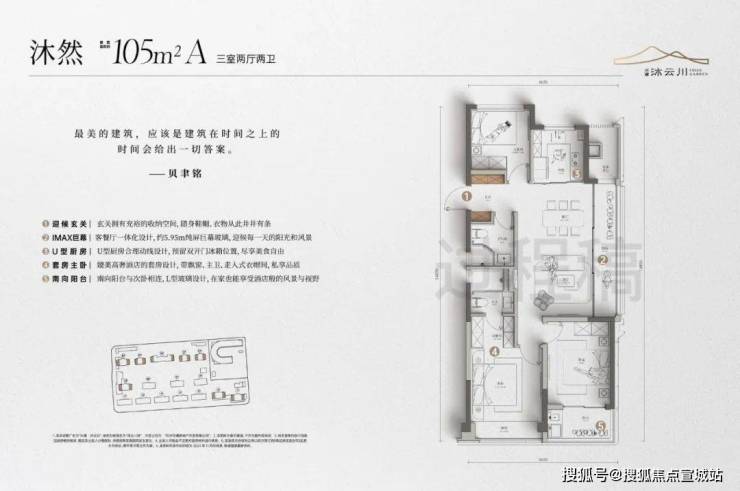 建面约105m²的户型有近6m的纯屏巨幅玻璃,大大提升了采光和观景的需求,“起床就能看到风景”。