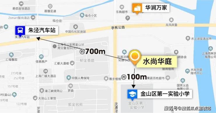 而就在水尚华庭直线距离约100米处,就是金山区第一实验小学,创办于1905年,是一所百年老校,也是金山一梯队公办小学,师资力量出众,在艺术,人文,科技和外语方面颇具特色。
