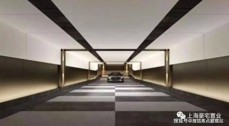 外滩壹号院的地下车库,车库坡道灯光会随着车辆入库运行而亮起,整体设计风格也是极具豪宅未来感。