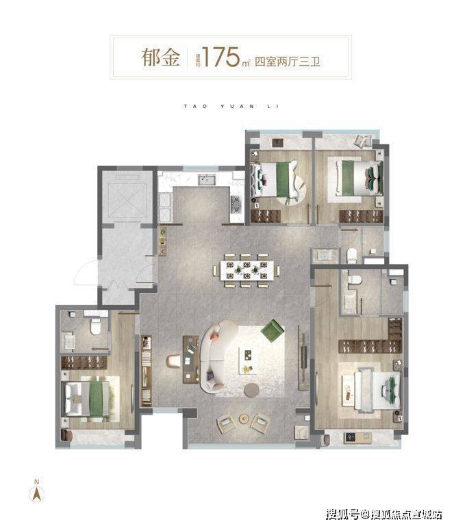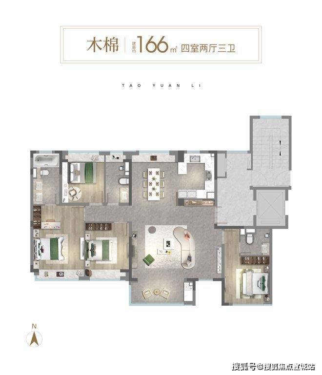 建面约166㎡的宽奢四房设计,南向4.5开间设计,在大横厅设计的同时做到了餐客厅空间独立,将每一寸空间妥帖利用。