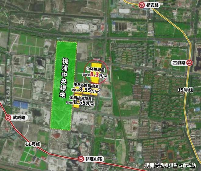 第二,中环·桃源里整盘均价8.3万/㎡,而桃浦最新出让宅地与项目相隔百米,联动价上调2500元/㎡。