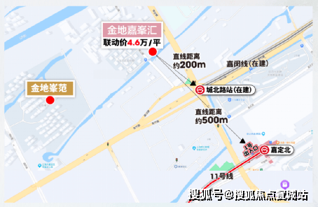 而金地嘉峯汇恰恰处于两条轨交的交汇点上!项目直线距离约500米,是轨交11号线嘉定北站!直线距离约200米,则是嘉闵线(在建)城北路站!如果说两条重磅轨交是打通西上海城市交通的任督二脉,那么金地嘉峯汇则是二脉交汇的北上海未来核心节点所在!