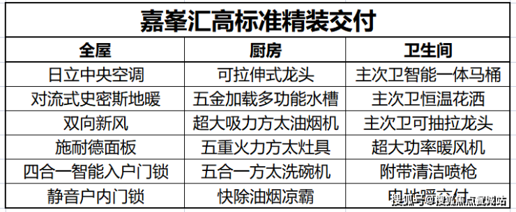 金地嘉峯汇标配中央空调、新风、地暖三大件!且选用日立等国际知名优质品牌!厨卫方面更追加洗碗机、凉霸、主次卫智能马桶等通常只出现在豪宅社区的配置!