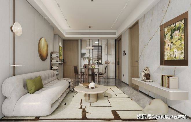 同时客餐厅一体化设计外接阳台,室内整体的尺度感和视野营造相当惊艳。