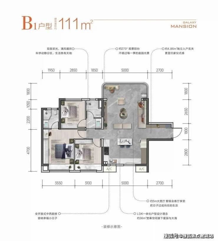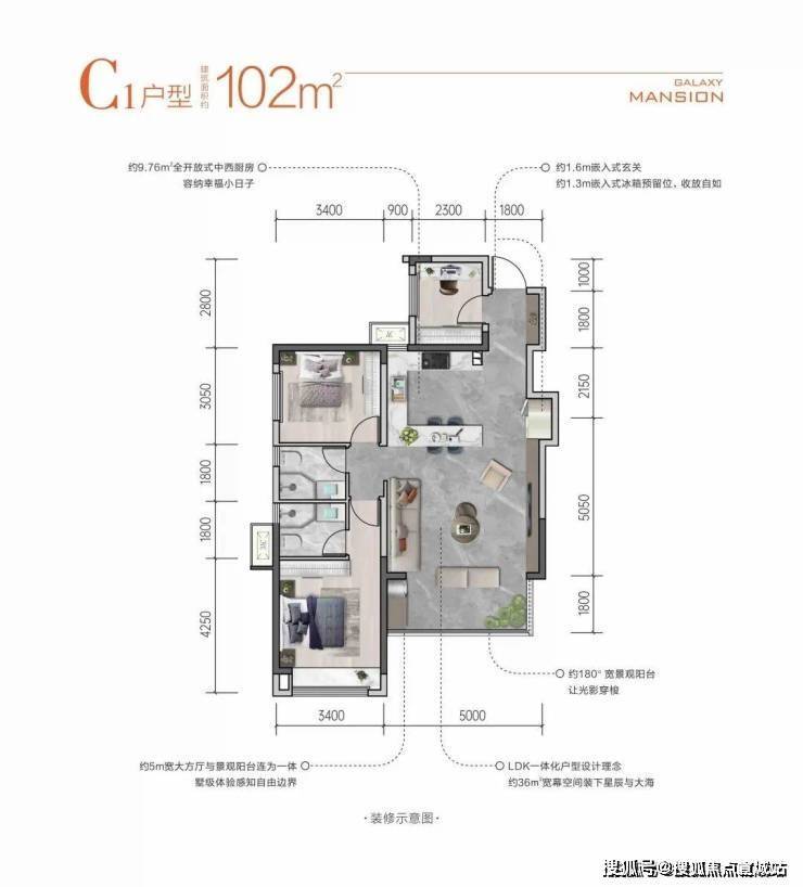 打破空间规则,星悦府售楼处电话☎:400-882-8814(预约热线)✔✔✔创新设计“鲸鱼”户型,打造36㎡LDK客餐厅,同时拥有约5米面宽和约1.8米进深阳台。精研人群习惯,设计开合式厨房、约20%的户型收纳系统和增大窗地比,悦享舒适感。