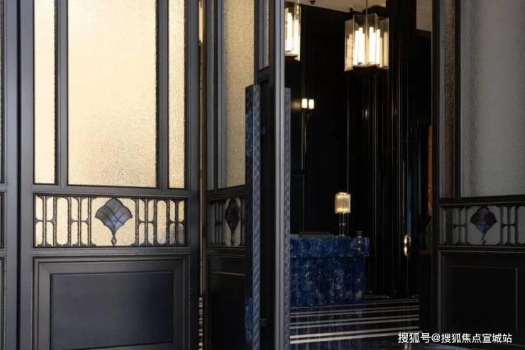 约30米的艺术连廊,借鉴PRADA荣宅多立克柱式以及和平饭店的拱形廊道,摩登海派,魅力十足: