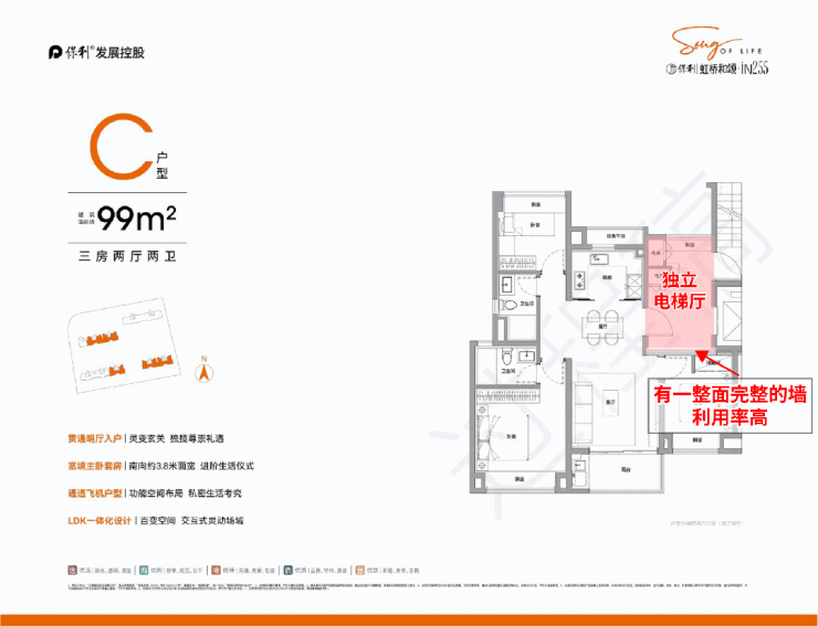 保利虹桥和颂·IN255延续了之前的设计亮点,并加以迭代,给出了一个同级无出其右的户型。