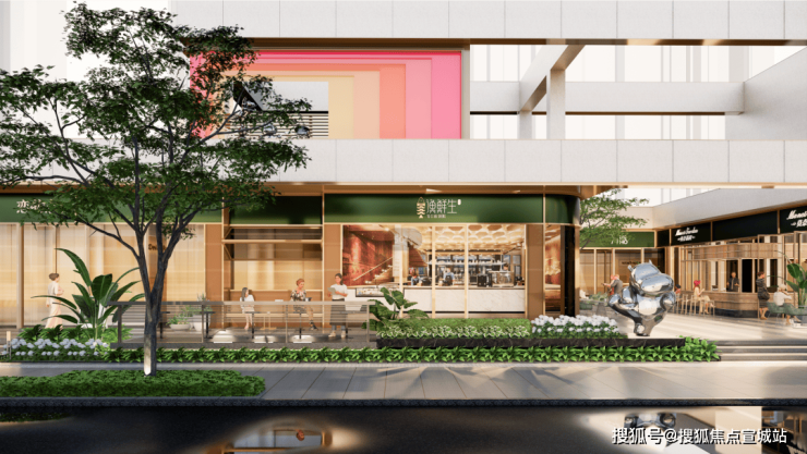 结合社区入口打造具有昭示性、年轻化的引力橱窗,节点处设置和酷马HIPPO,承接品牌文化,符合时代潮流、契合消费者审美视觉,形成内外统一的时尚主题。