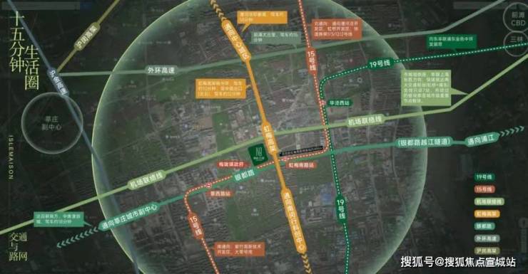 而15号线虹梅南路站距离项目步行仅约400m,上车后1站即是华泾西站,可与19号线换乘,周边有龙湖华泾天街等商业;5站到上海南站,可换成1号线和3号线;6站到漕河泾,同站还可以与19号线换乘,直通前滩、上海世博园区。还有23号线华泾路站(建设中),也能与19号线换乘,未来将连通徐汇滨江,直达上海体育场。