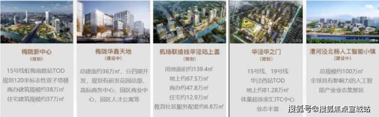 梅陇华鑫天地:上海首个镇级工业园区转型城市更新落地项目。规划有研发花园总部、高标商务中心、园区商业中心、园区会议中心、园区人才公寓、社区邻里中心、研发标准办公,预计2023年一期建成。