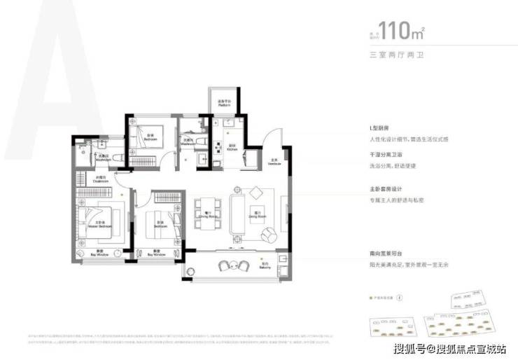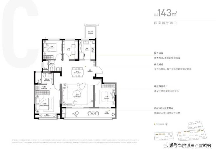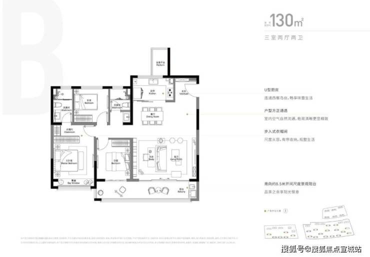 户型:110㎡(3-2-2),130㎡(3-2-2),143㎡(4-2-2)