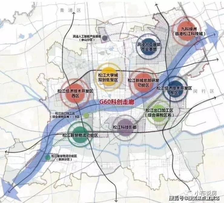 G60上海松江科创走廊“一廊九区”空间布局