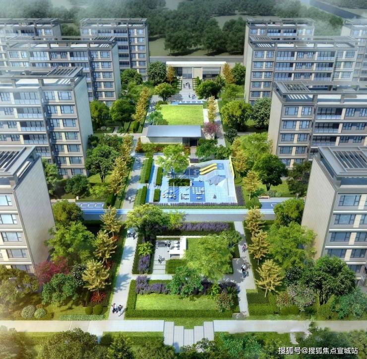 社区入口人车分流,从叠水景观、仪式树阵,到中心廊架城市会客厅,随着景观轴的深入,轻松完成由仪式序列感到园境生活感的转换。