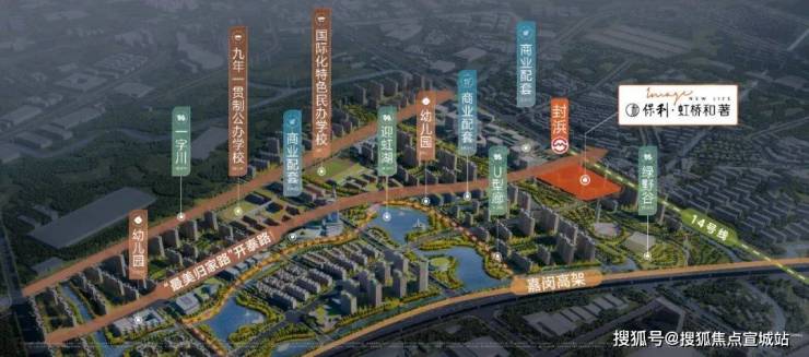 计划引入九年一贯制公办教育、民办学校(国际化特色办学),规划打造10公顷迎虹湖、带主题滨水公园的15公顷绿野谷公园等配套。