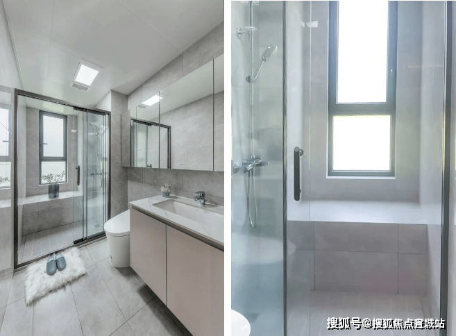通常,主卫和次卫能拥有窗户达到全明采光已经称得上优秀了,而这套户型的两个卫生间均都有飘窗,丰富收纳可能性。