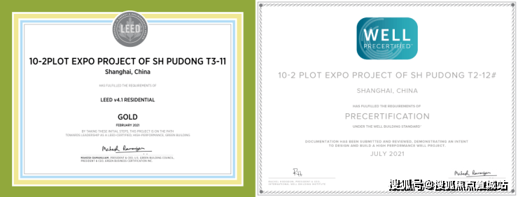 世博园区低碳实践,从能源低碳化、绿色建筑建设、低碳交通系统建设、资源节约和综合利用、提升景观碳汇建设、智慧人文建设六大方面着手。目前已获得绿色建筑的项目中100%获得绿色建筑二星级及以上标识,其中获得三星级标识的绿色建筑比例达到61%。保利·世博天悦住宅项目毗邻黄浦江,项目获得绿建二星级设计标识,其中 10、11、12 号楼获得LEED金级预认证以及 WELL 金级预认证。
