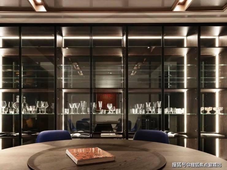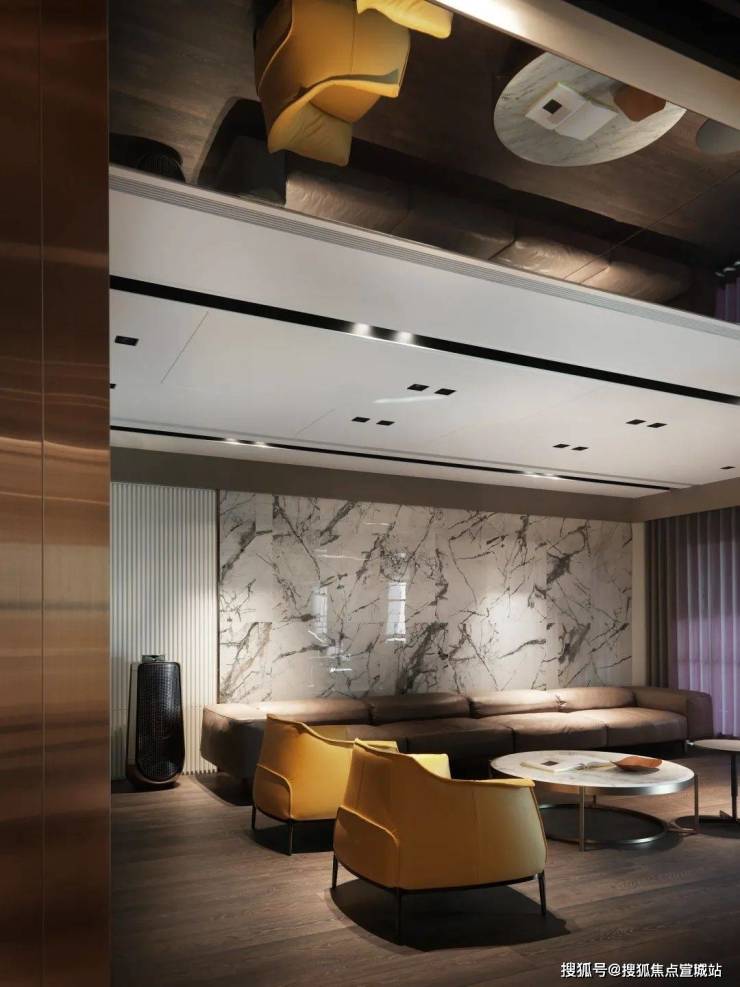 天花板透过镜面、金属反射拉伸出空间层次与设计质感;背墙砖面纹理具独特表情,却不显高调、张狂,再辅以石材、玻璃与木纹肌理,融入细腻、舒适的场域气息。
