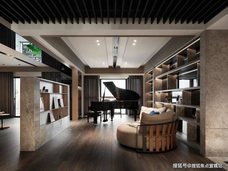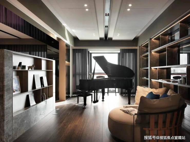 钢琴摆设于交谊厅靠窗处,搭配舒适、慵懒的Poltrona lounge沙发,享受惬意阅读时光;窗边配置小吧台、高脚椅,欣赏窗外绿意景致,疗愈身心。