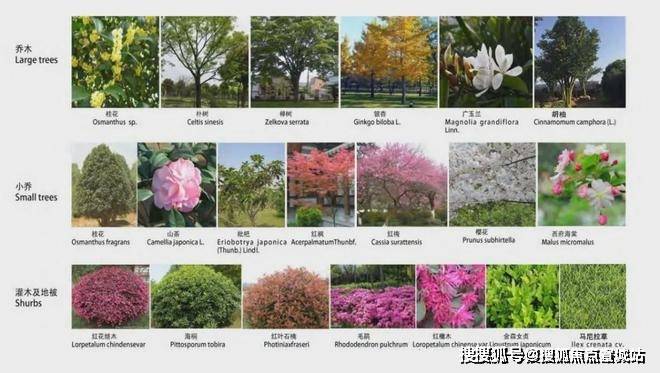 四季更迭的景观植被巧妙布局,共有20多种乔木、小乔、灌木等植物种类,营造出“四季有色”的美妙景象。