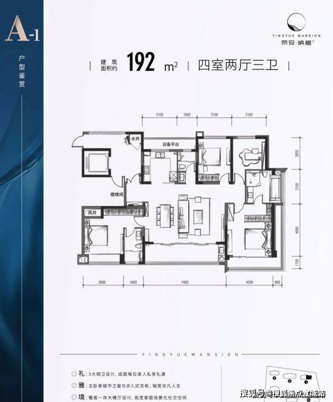 面积:144㎡、180㎡、192m2滨水私域平层 均价:18000毛坯