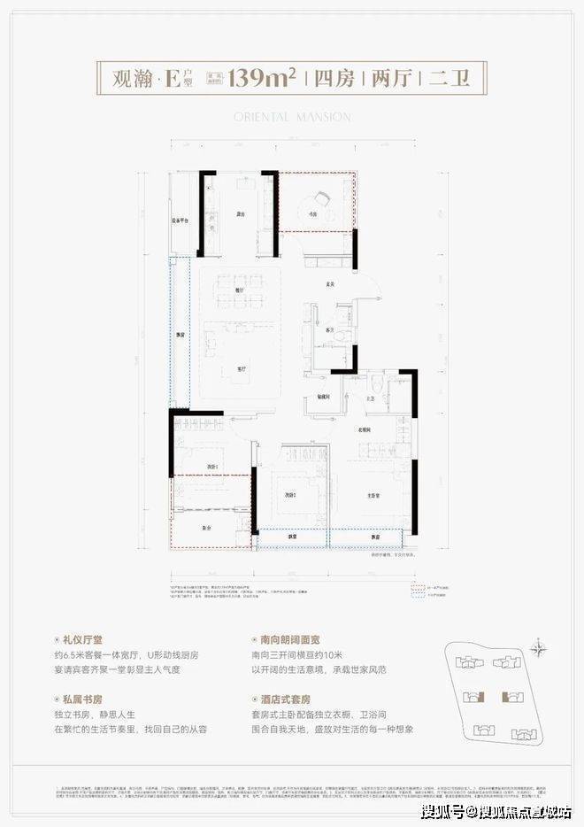 其中,139平竖厅户型亮点分析: