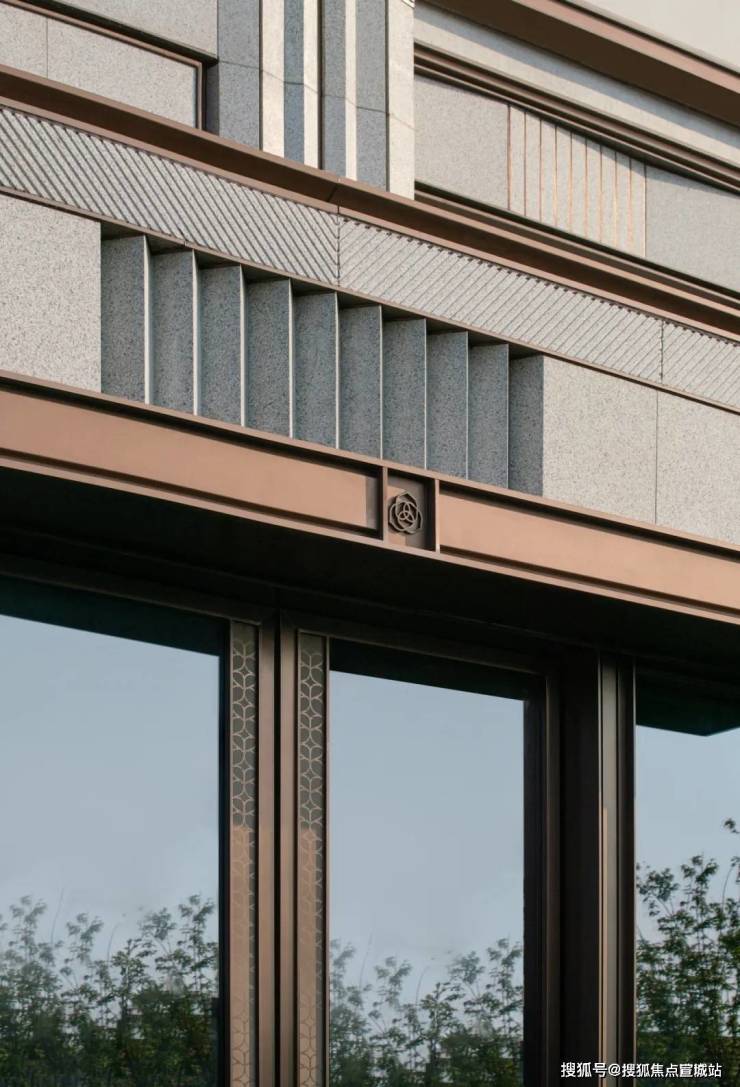 古铜金属边框的巧妙镶嵌,为建筑立面注入精致的装饰艺术魅力。金属线条在银河白麻石材基底上勾勒出立体轮廓,当阳光照射时,铜框泛起温暖光晕,与冷灰色石材形成冷暖对比,如同西湖保俶塔的倒影般熠熠生辉。
