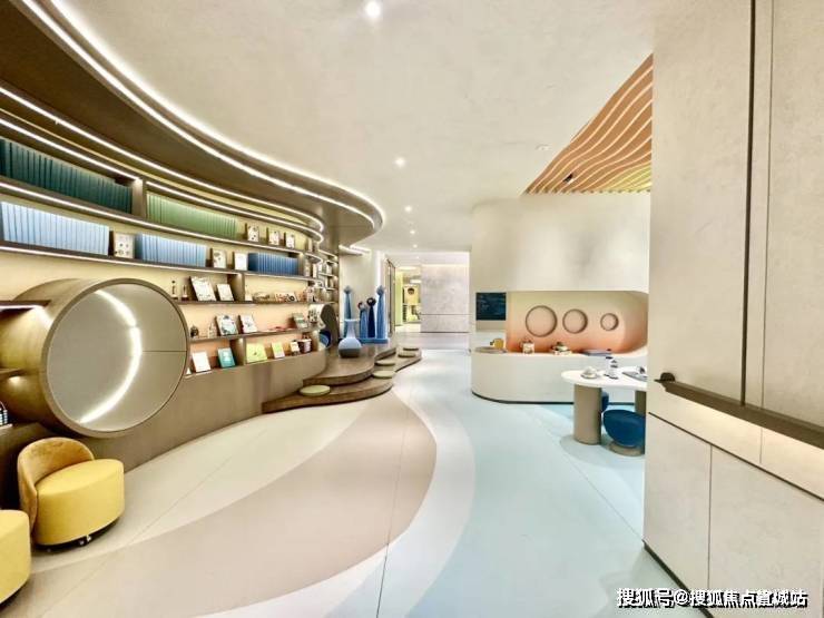 社区内部还有开放式架空层设计,结合建筑、空间、自然环境关系,室内室外联动,呈现一个 景观会客、海浪书屋、儿童休闲 等多重功能的开放式 架空层 ,目前实景基本还原效果图,未来业主及孩子也有一个玩乐及阅读的开放式公共空间,更具生活趣味~